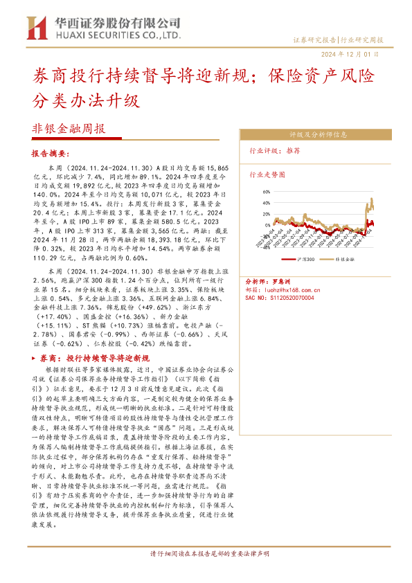 【华西证券】【20241201】非银金融周报:券商投行持续督导将迎新规;保险资产风险分类办法升级-13页