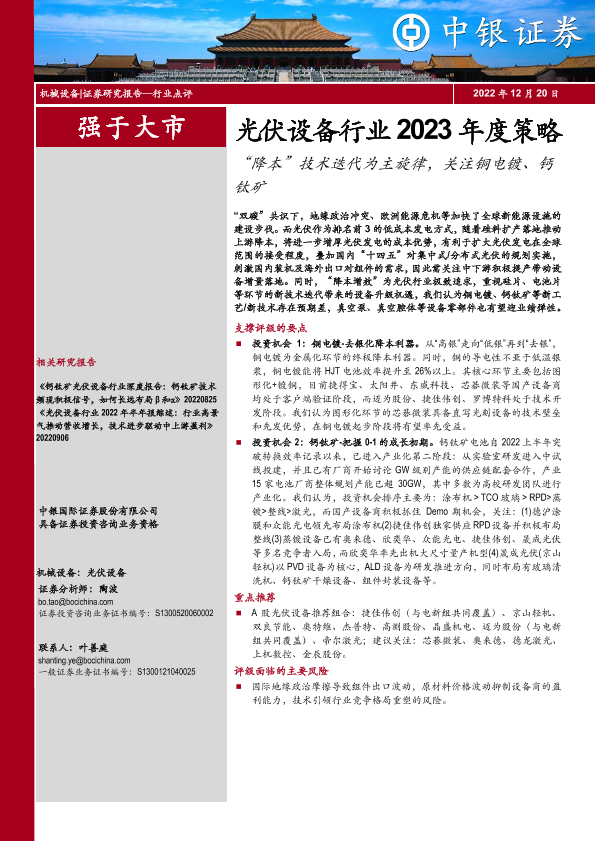 【中银证券】【20221220】光伏设备行业2023年度策略:“降本”技术迭代为主旋律,关注铜电镀、钙钛矿-17页