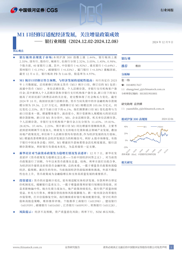【银河证券】【20241209】银行业周报:M1口径修订适配经济发展,关注增量政策成效-19页