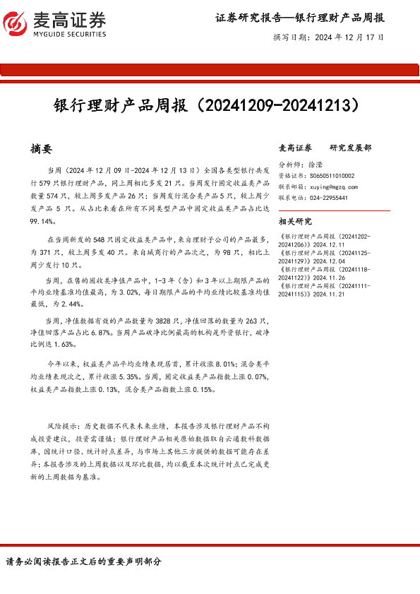 业绩比较基准 净值波动 发行市场 固定收益类 银行理财产品