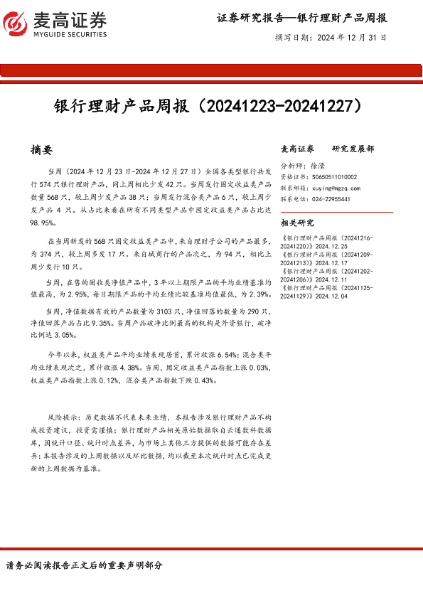 【麦高证券】【20241231】银行业:银行理财产品周报-13页