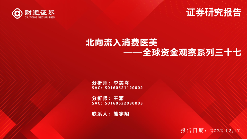 北向资金 投资策略 消费医美 金融市场分析 全球资金流动