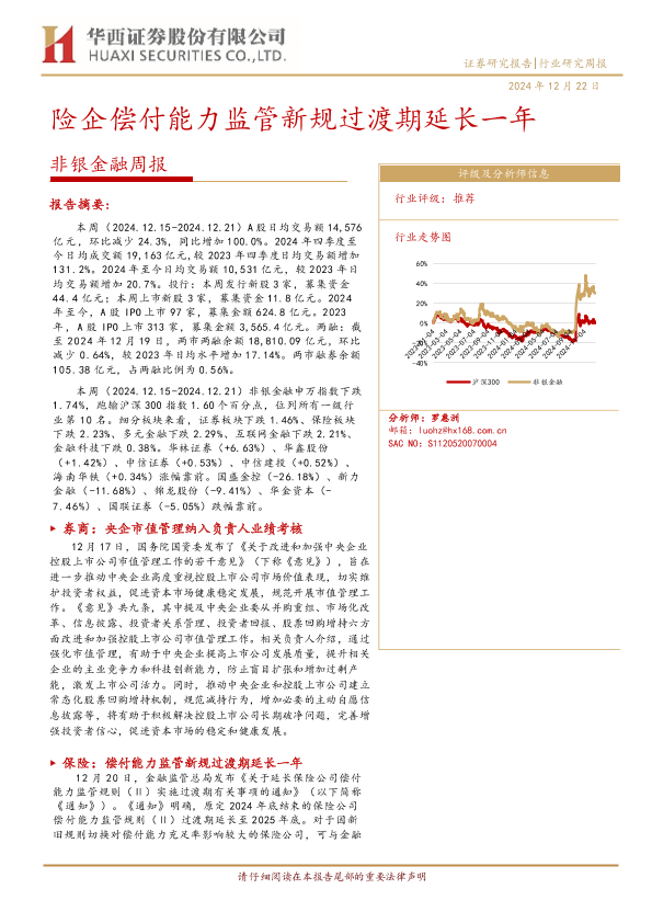 【华西证券】【20241222】险企偿付能力监管新规过渡期延长一年-11页
