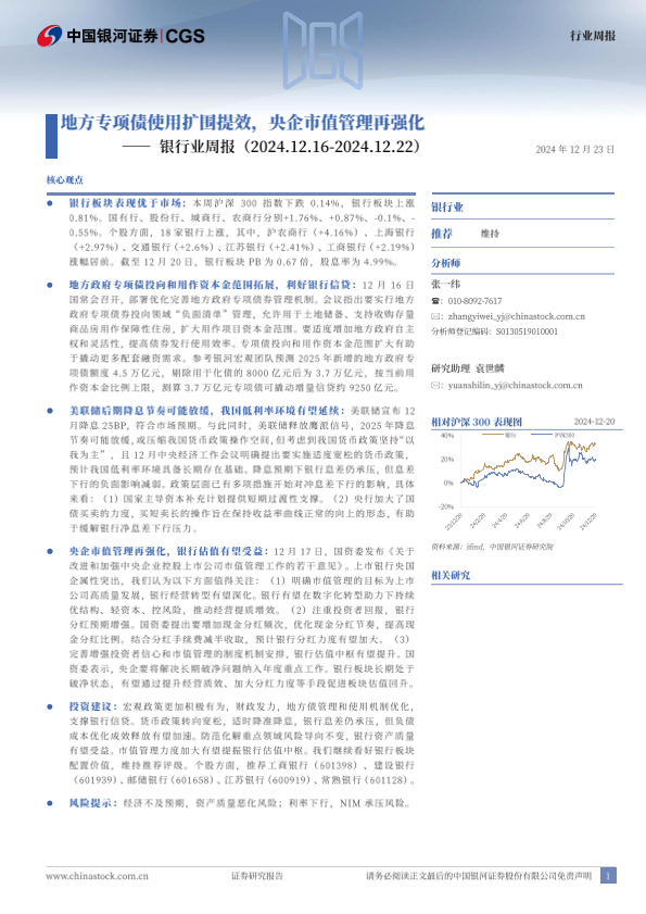 【银河证券】【20241223】银行业周报:地方专项债使用扩围提效,央企市值管理再强化-19页