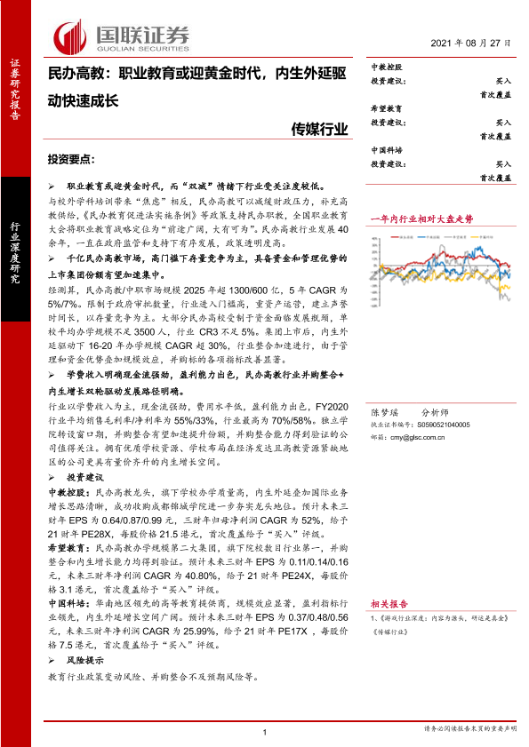 【国联证券】【20210827】传媒行业:民办高教,职业教育或迎黄金时代,内生外延驱动快速成长-39页