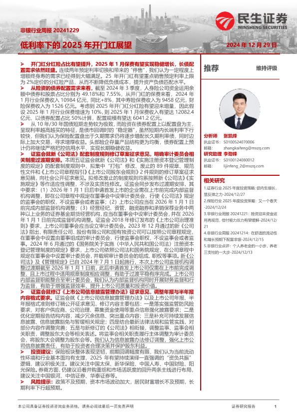 【民生证券】【20241229】低利率下的2025年开门红展望-15页