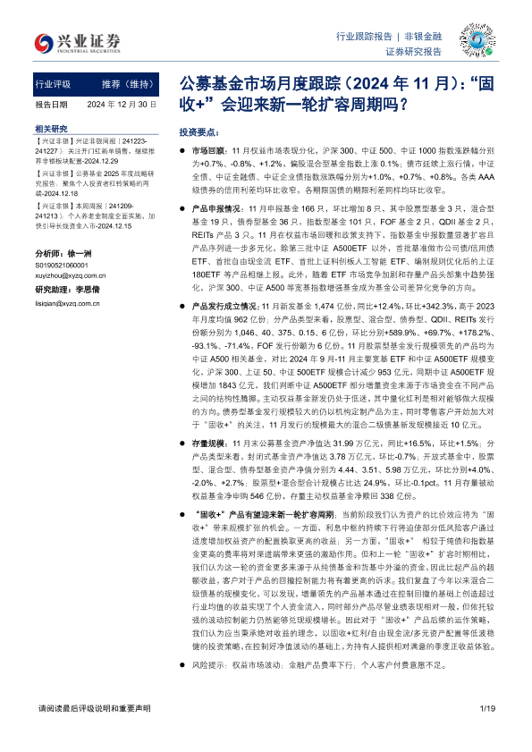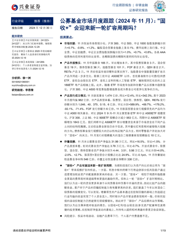 【兴业证券】【20241230】公募基金市场月度跟踪:“固收+”会迎来新一轮扩容周期吗?-19页