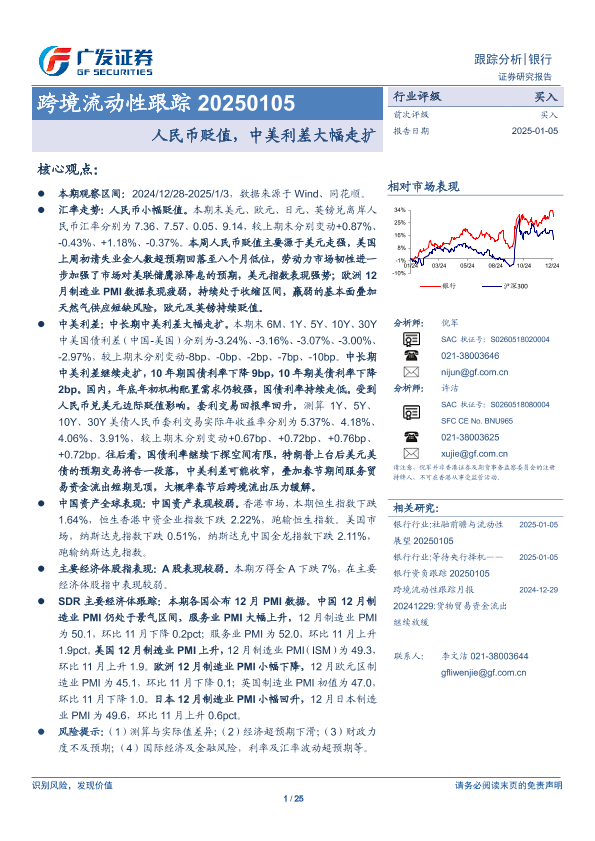【广发证券】【20250105】银行跨境流动性跟踪:人民币贬值,中美利差大幅走扩-25页