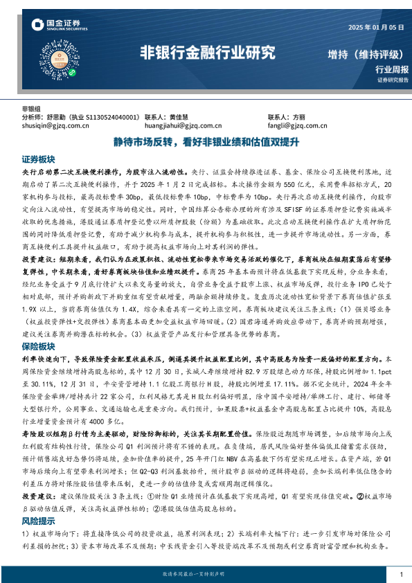 【国金证券】【20250105】非银行金融行业周报:静待市场反转,看好非银业绩和估值双提升-10页