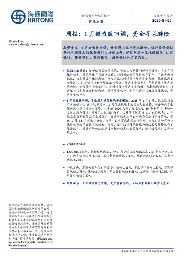 【海通国际】【20250105】1月微盘股回调,资金寻求避险-16页