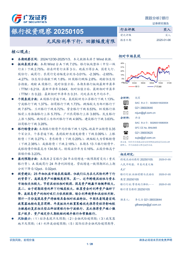【广发证券】【20250106】银行投资观察:无风险利率下行,回撤幅度有限-28页