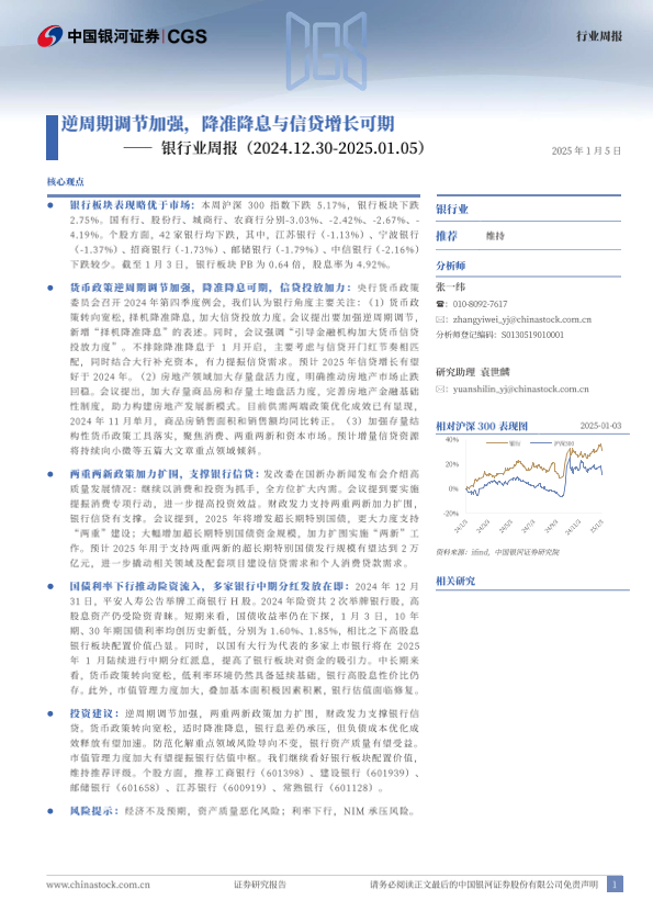 【银河证券】【20250105】银行业周报:逆周期调节加强,降准降息与信贷增长可期-20页