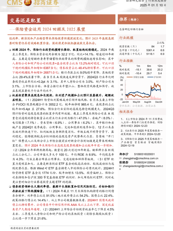 【海通证券】【20250110】保险资金运用2024回顾及2025展望:交易还是配置-17页