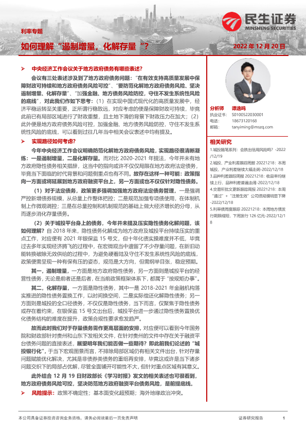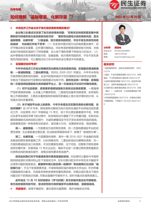 【民生证券】【20221220】利率专题:如何理解“遏制增量,化解存量“?-17页