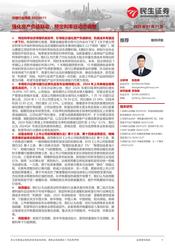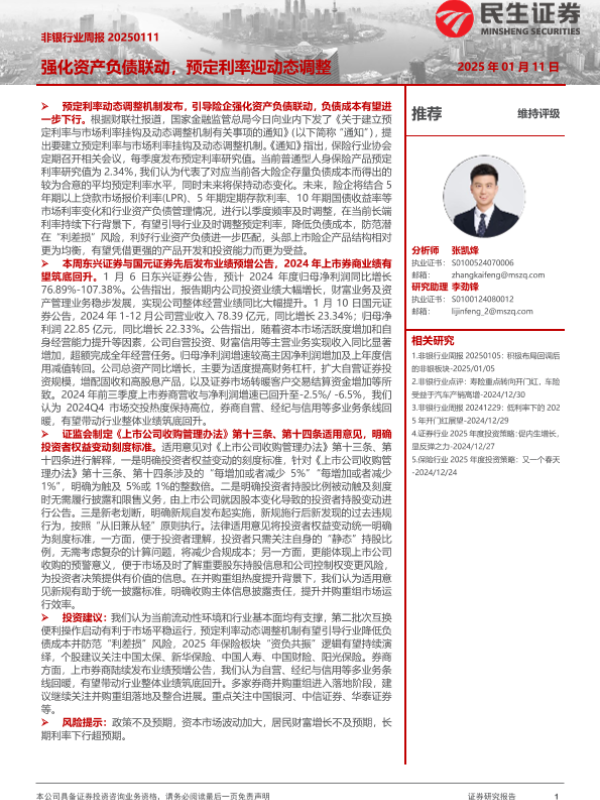 【民生证券】【20250111】非银行业周报:强化资产负债联动,预定利率迎动态调整-14页