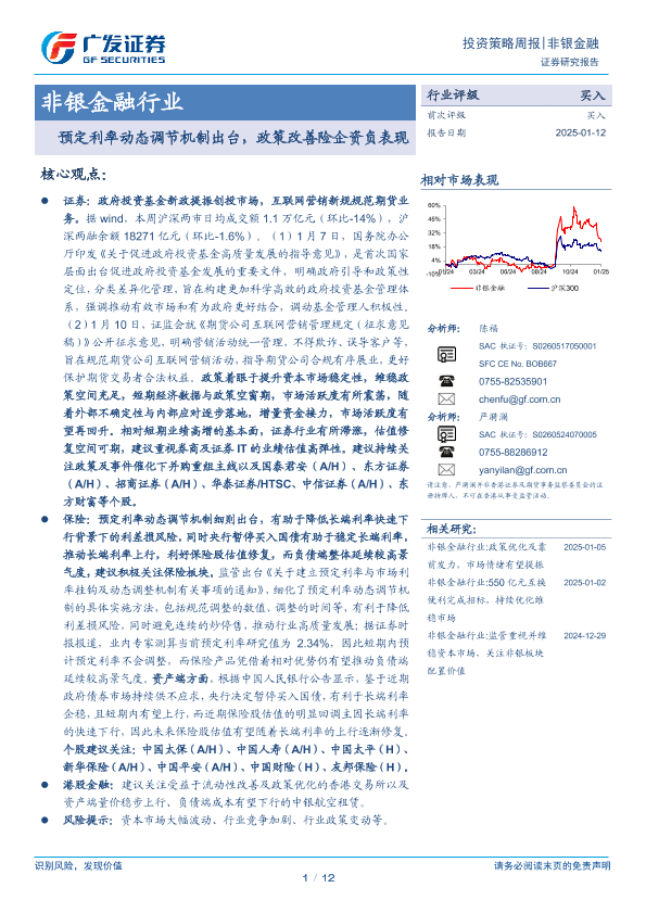 【广发证券】【20250112】非银金融行业投资策略周报:预定利率动态调节机制出台,政策改善险企资负表现-12页