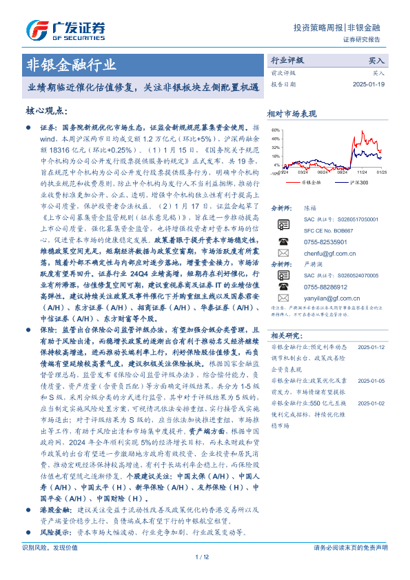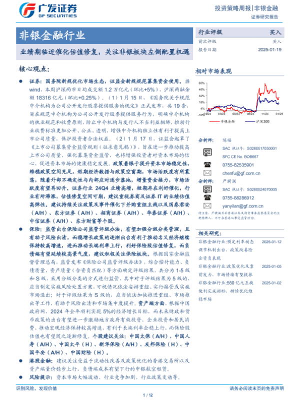 【广发证券】【20250119】非银金融行业投资策略周报:业绩期临近催化估值修复,关注非银板块左侧配置机遇-12页