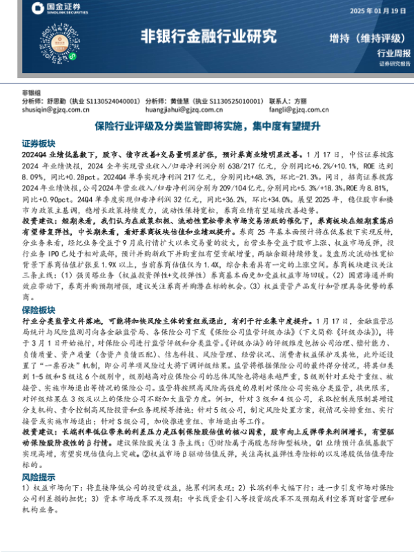 【国金证券】【20250119】非银行金融行业研究:保险行业评级及分类监管即将实施,集中度有望提升-10页
