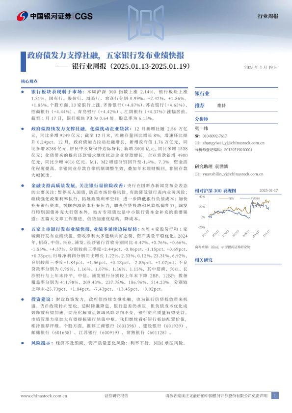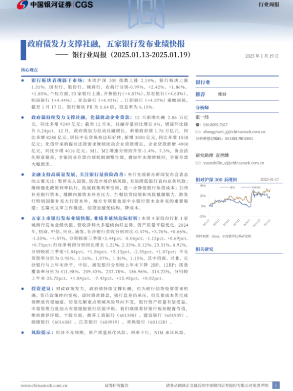 【银河证券】【20250119】银行业周报:政府债发力支撑社融,五家银行发布业绩快报-21页