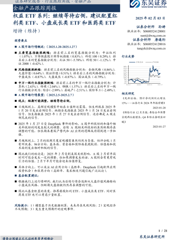 【东吴证券】【20250203】金融产品跟踪周报:权益ETF系列:继续等待右侧,建议配置红利类ETF、小盘成长类ETF和医药类ETF-21页