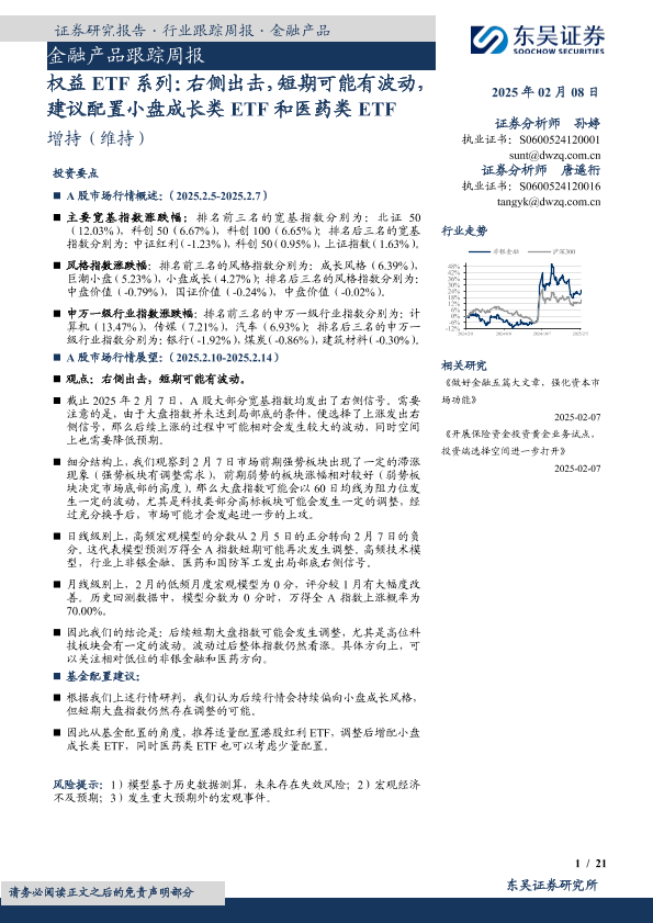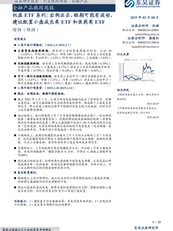 【东吴证券】【20250208】权益ETF系列:右侧出击,短期可能有波动,建议配置小盘成长类ETF和医药类ETF-21页