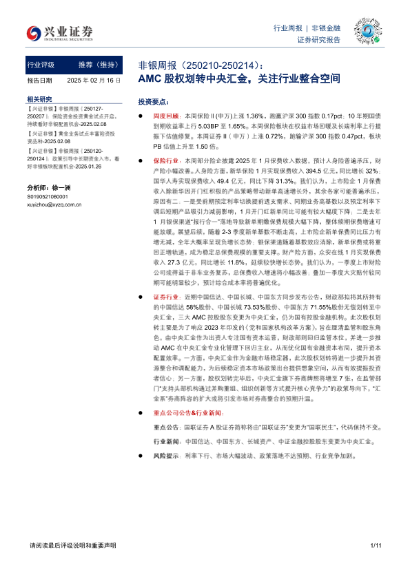 【兴业证券】【20250216】非银周报:AMC股权划转中央汇金,关注行业整合空间-11页