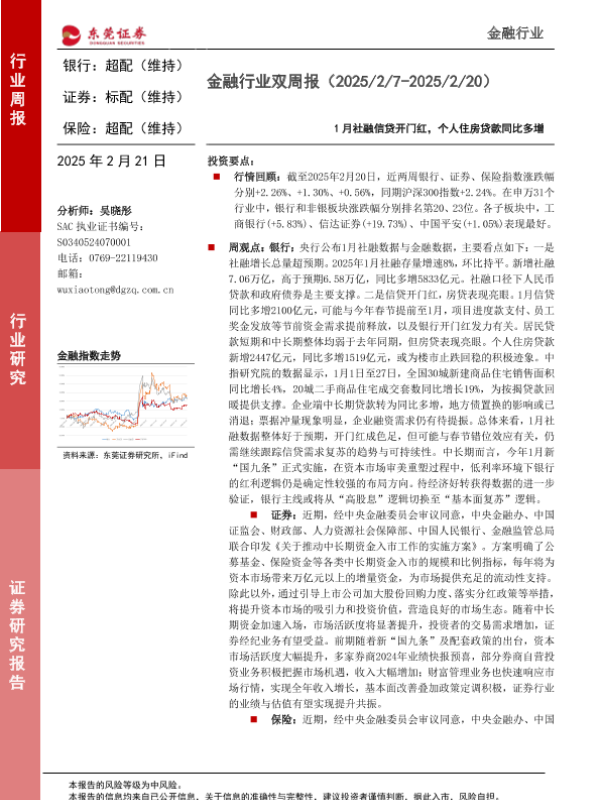 保险 社融信贷 证券 金融行业 银行