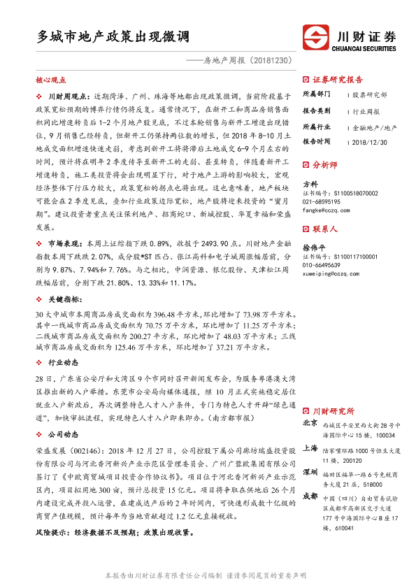 【川财证券】【20181230】多城市地产政策出现微调-10页