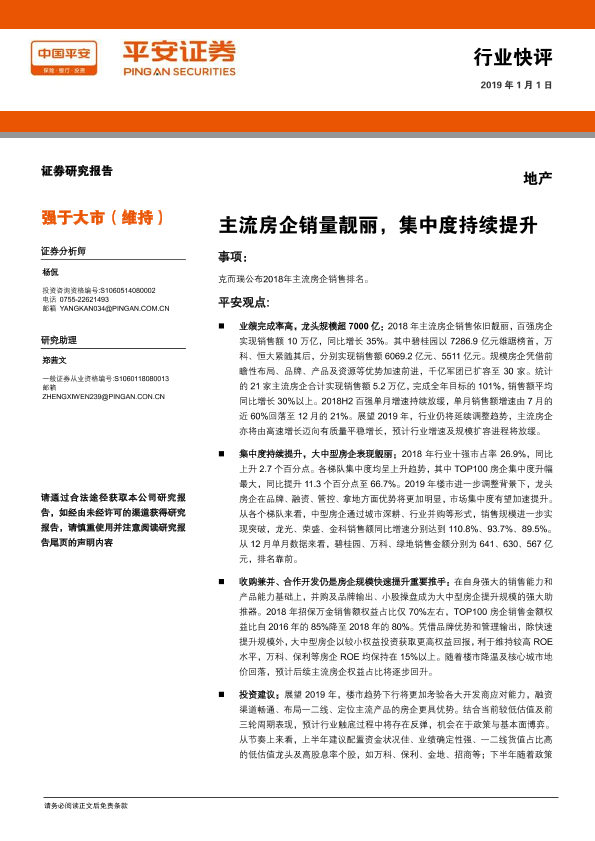 【平安证券】【20190101】地产行业快评:主流房企销量靓丽,集中度持续提升-7页