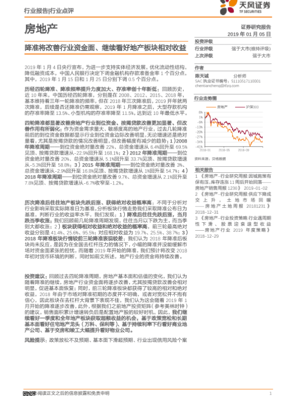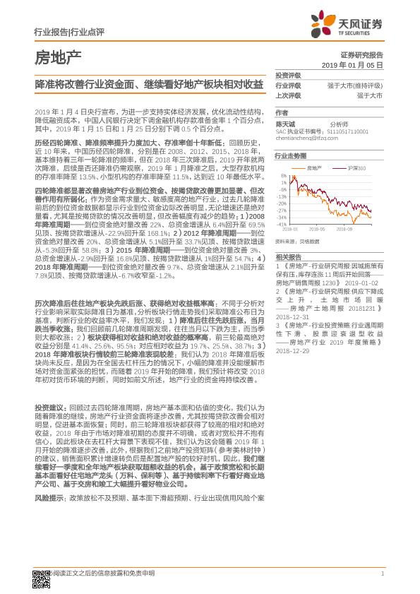 【天风证券】【20190105】降准将改善行业资金面、继续看好地产板块相对收益-6页