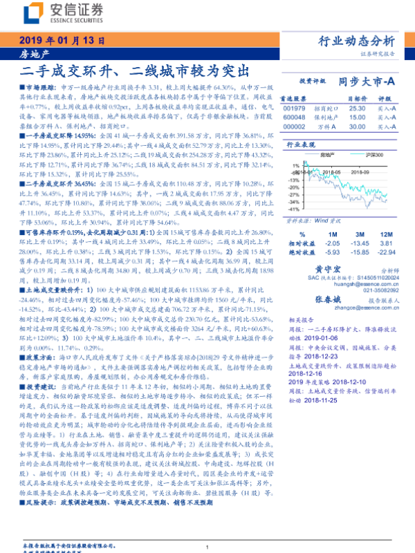 【安信证券】【20190113】房地产行业动态分析:二手成交环升、二线城市较为突出-10页