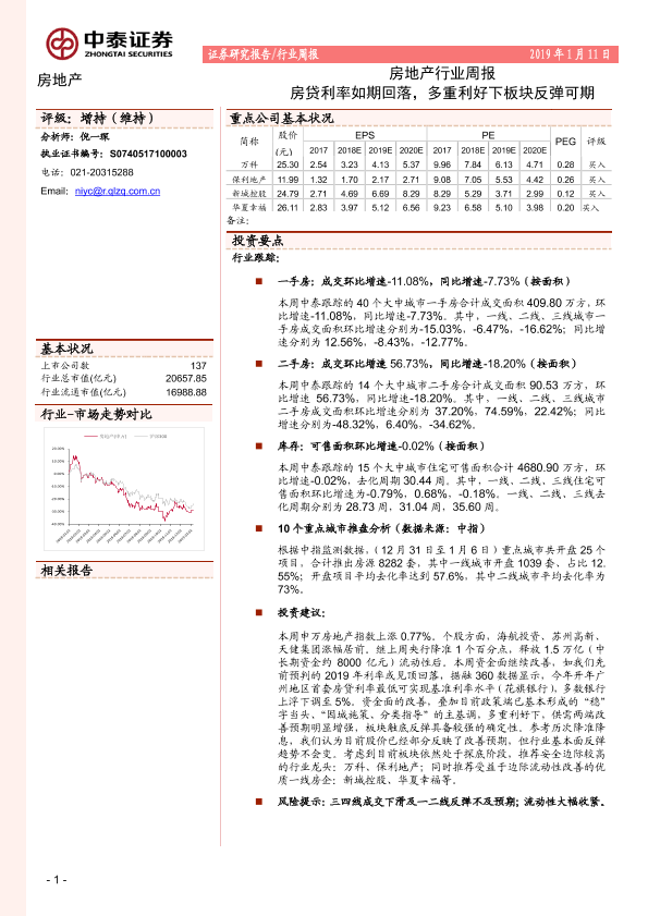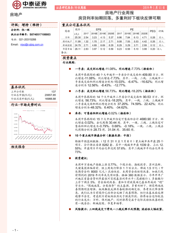 【中泰证券】【20190111】房地产行业周报:房贷利率如期回落,多重利好下板块反弹可期-18页