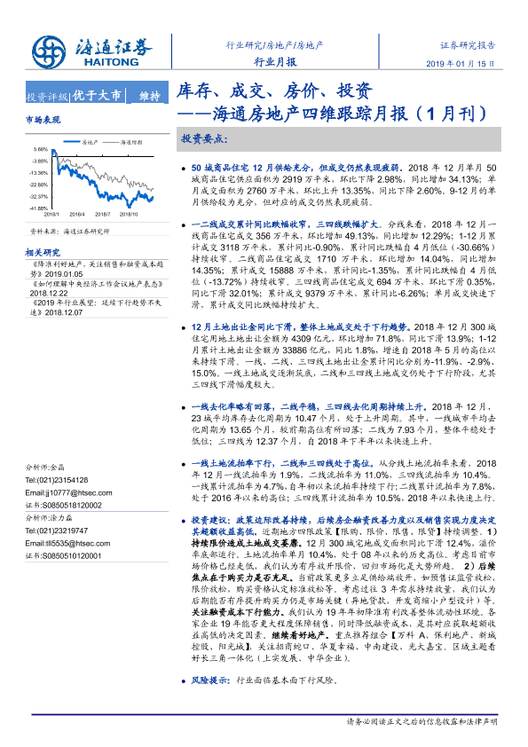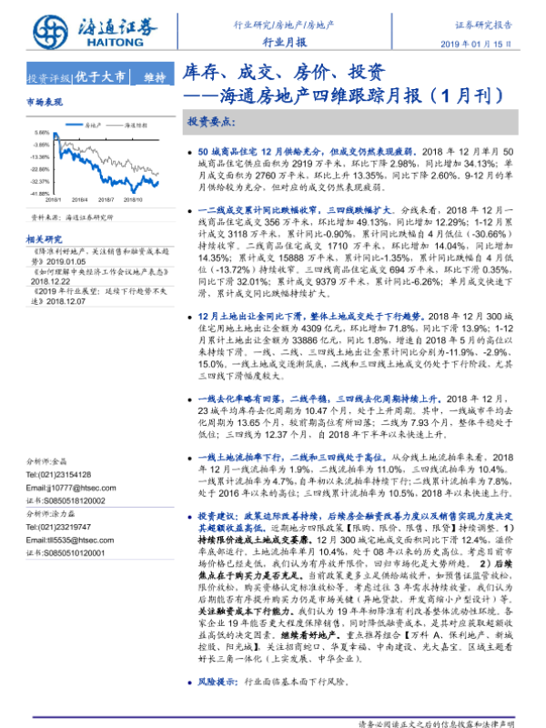 【海通证券】【20190115】海通房地产四维跟踪月报(1月刊):库存、成交、房价、投资-16页