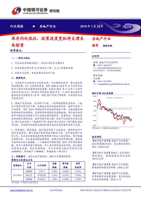 【银河证券】【20190114】库存仍处低位,政策适度宽松将支撑未来销售-18页