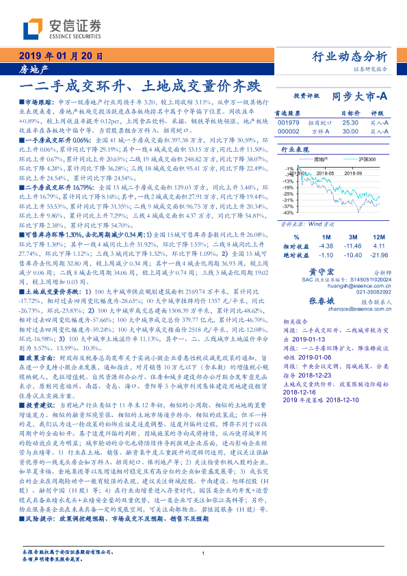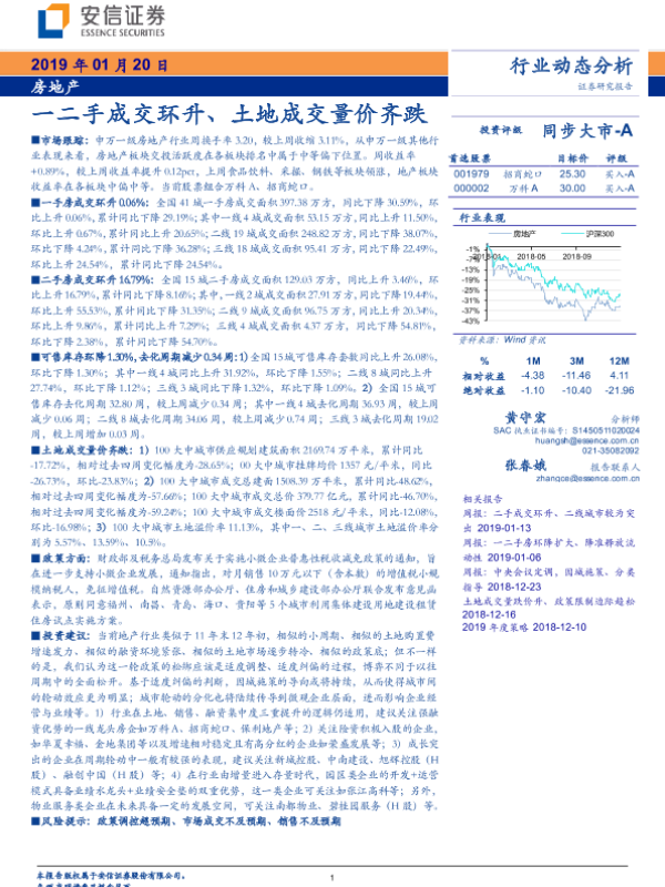 【安信证券】【20190120】房地产行业动态分析:一二手成交环升、土地成交量价齐跌-10页