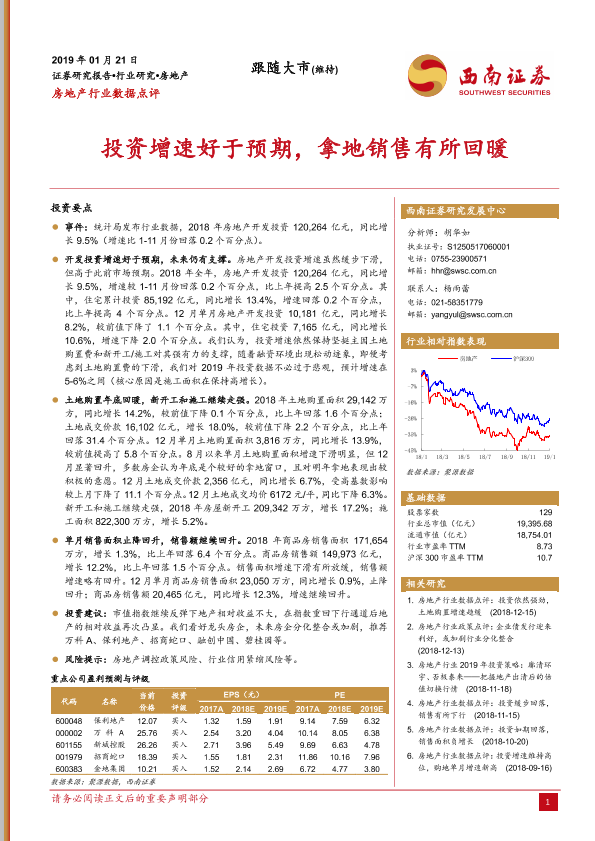 【西南证券】【20190121】房地产行业数据点评:投资增速好于预期,拿地销售有所回暖-4页