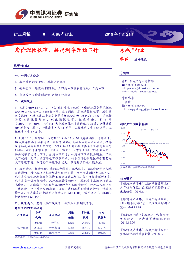 【银河证券】【20190121】房地产行业周报:房价涨幅收窄,按揭利率开始下行-25页
