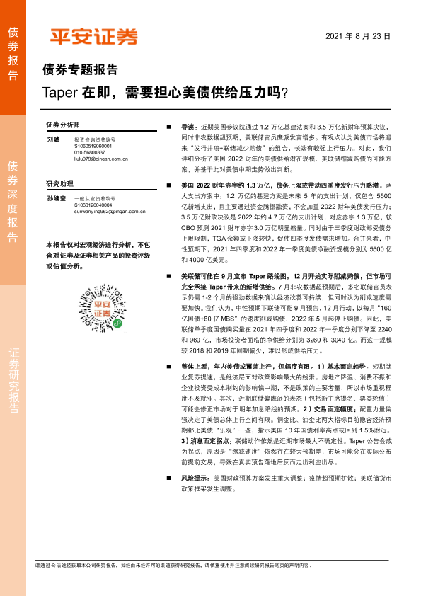 【平安证券】【20210823】Taper在即,需要担心美债供给压力吗?-19页