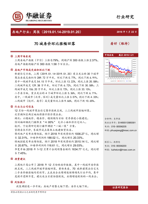 【华融证券】【20190122】房地产行业:周报-70城房价环比涨幅回落-12页