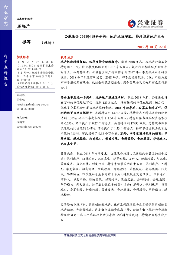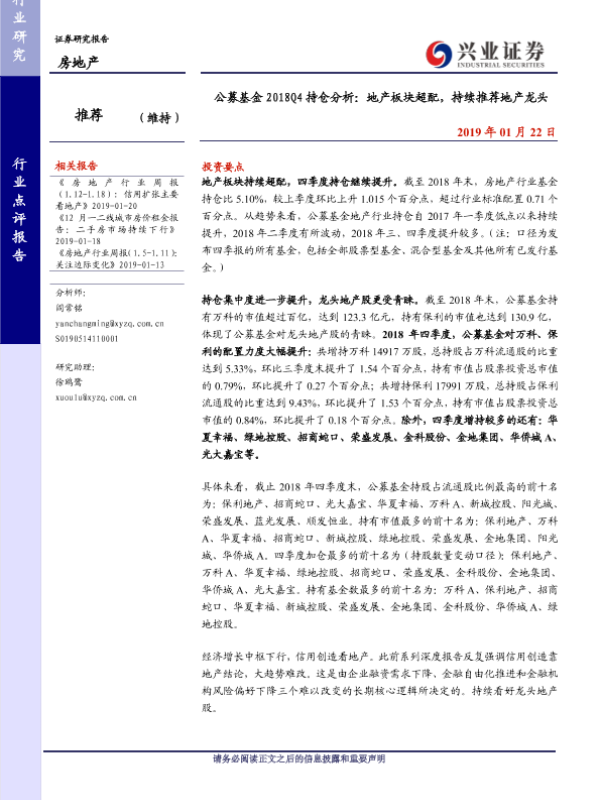 【兴业证券】【20190122】公募基金2018Q4持仓分析:地产板块超配,持续推荐地产龙头-5页