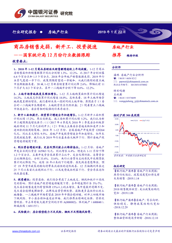 【银河证券】【20190122】国家统计局12月份行业数据跟踪:商品房销售走弱,新开工、投资提速-11页