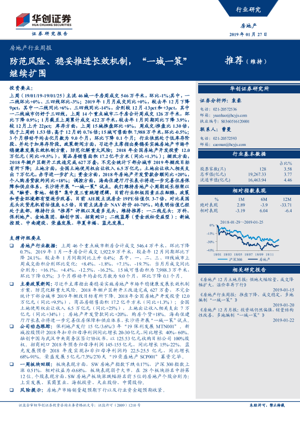 【华创证券】【20190127】房地产行业周报:防范风险、稳妥推进长效机制,“一城一策”继续扩围-23页