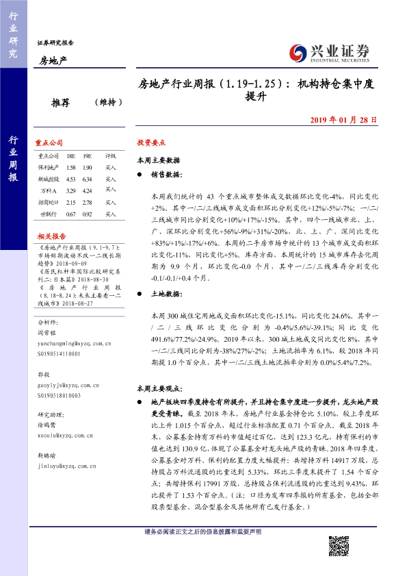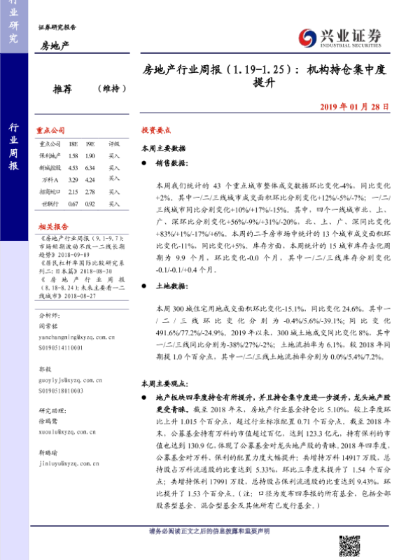 【兴业证券】【20190128】房地产行业周报:机构持仓集中度提升-30页