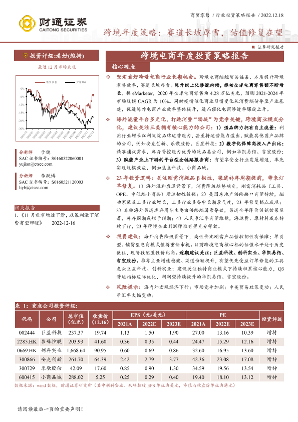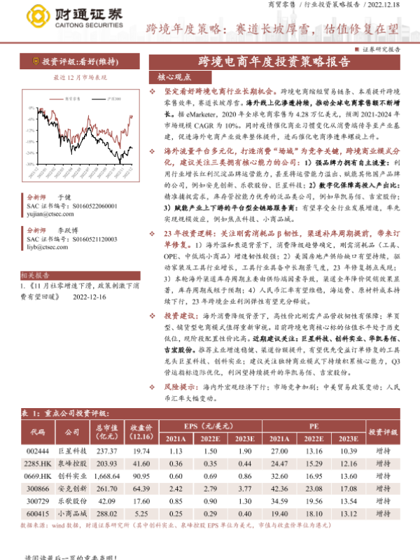 【财通证券】【20221218】商贸零售行业跨境电商年度投资策略报告:赛道长坡厚雪,估值修复在望-24页