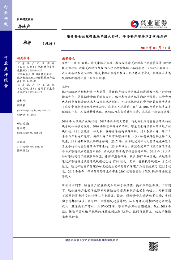 【兴业证券】【20190131】增量资金必然带来地产股大行情,平安资产增持华夏幸福点评-3页