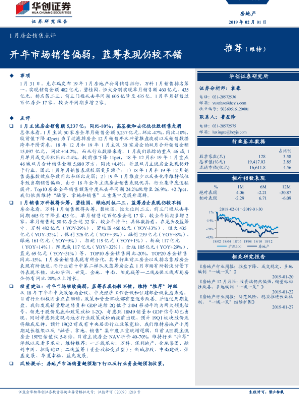 【华创证券】【20190201】1月房企销售点评:开年市场销售偏弱,蓝筹表现仍较不错-10页