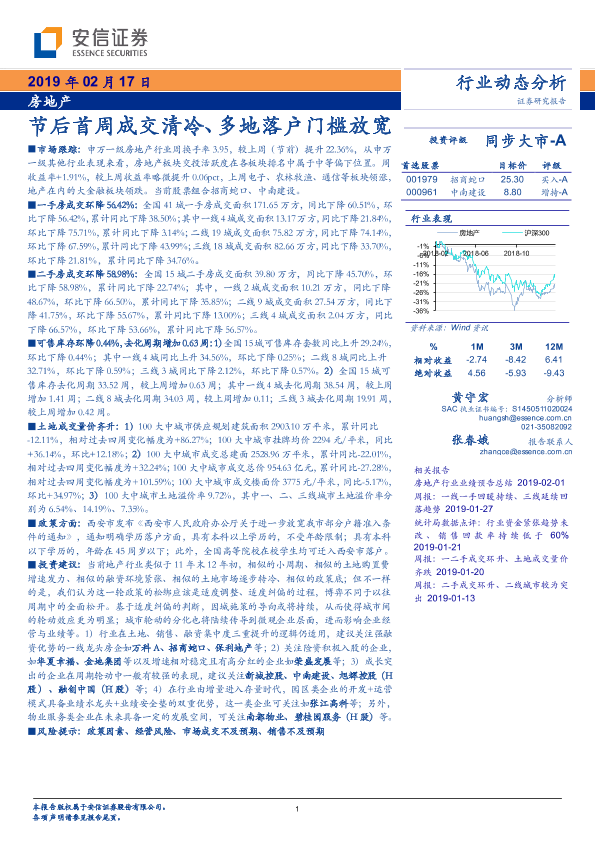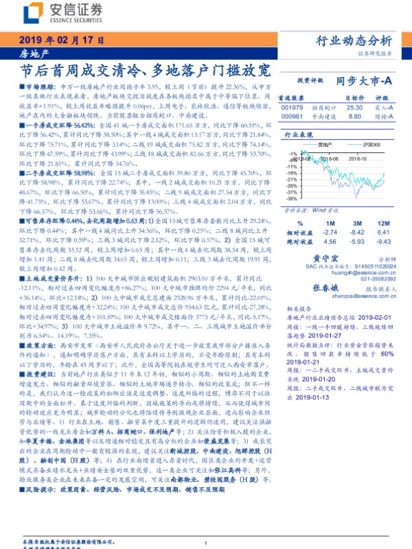 【安信证券】【20190217】节后首周成交清冷、多地落户门槛放宽-10页