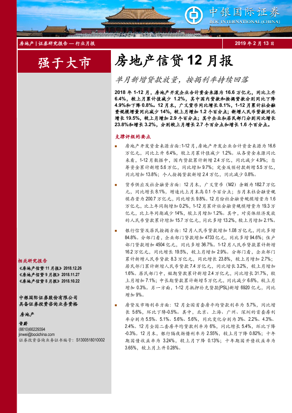 【中银证券】【20190213】单月新增贷款放量,按揭利率持续回落-13页