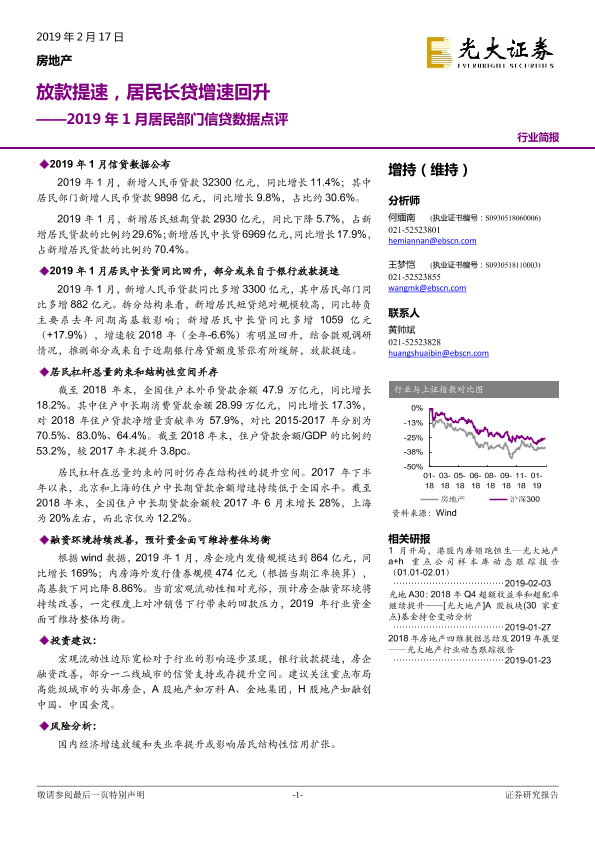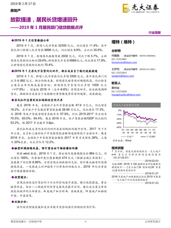 【光大证券】【20190217】2019年1月居民部门信贷数据点评:放款提速,居民长贷增速回升-4页