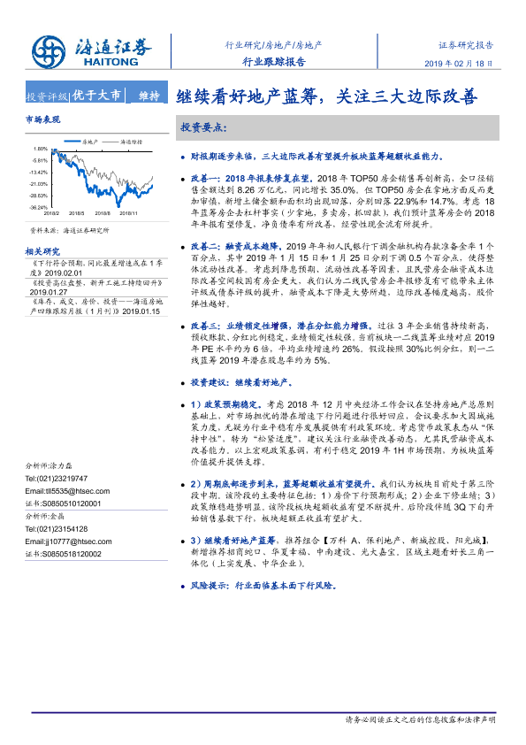 【海通证券】【20190218】房地产行业跟踪报告:继续看好地产蓝筹,关注三大边际改善-6页